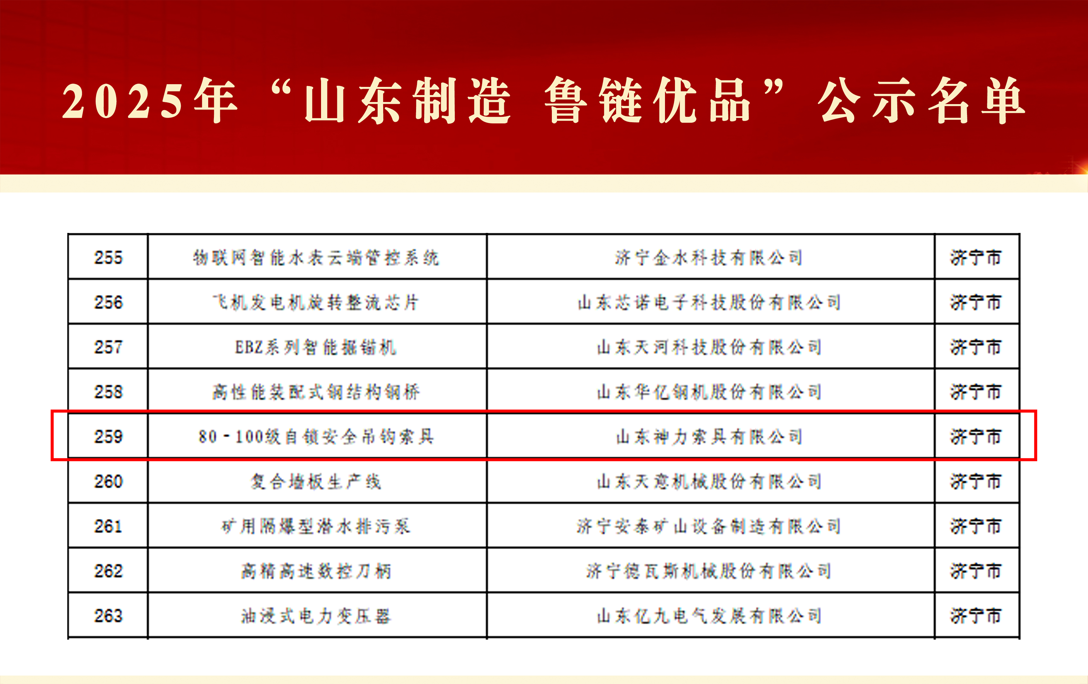 近日,2025年山東制造魯鏈優(yōu)品首批名單正式公示,山東神力索具有限公司憑借卓越的產(chǎn)品質(zhì)...